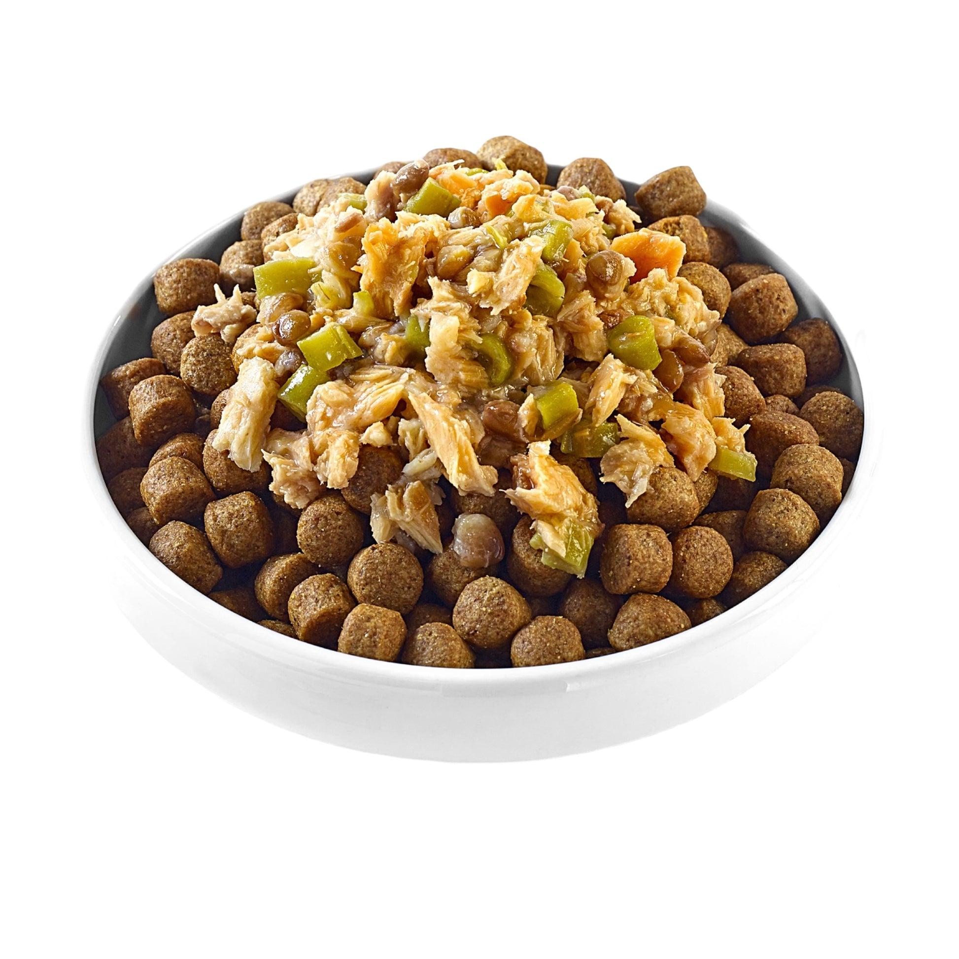 Gelukkige honden eten hun bordje helemaal leeg. Ons recept is gevuld met hoogwaardige witvis en zalm voor eiwitten, gezonde linzen voor vezels en ook sperziebonen die barsten van essentiële vitamines.