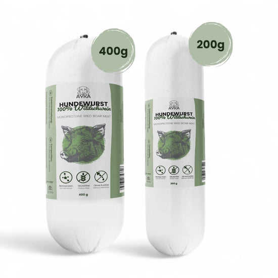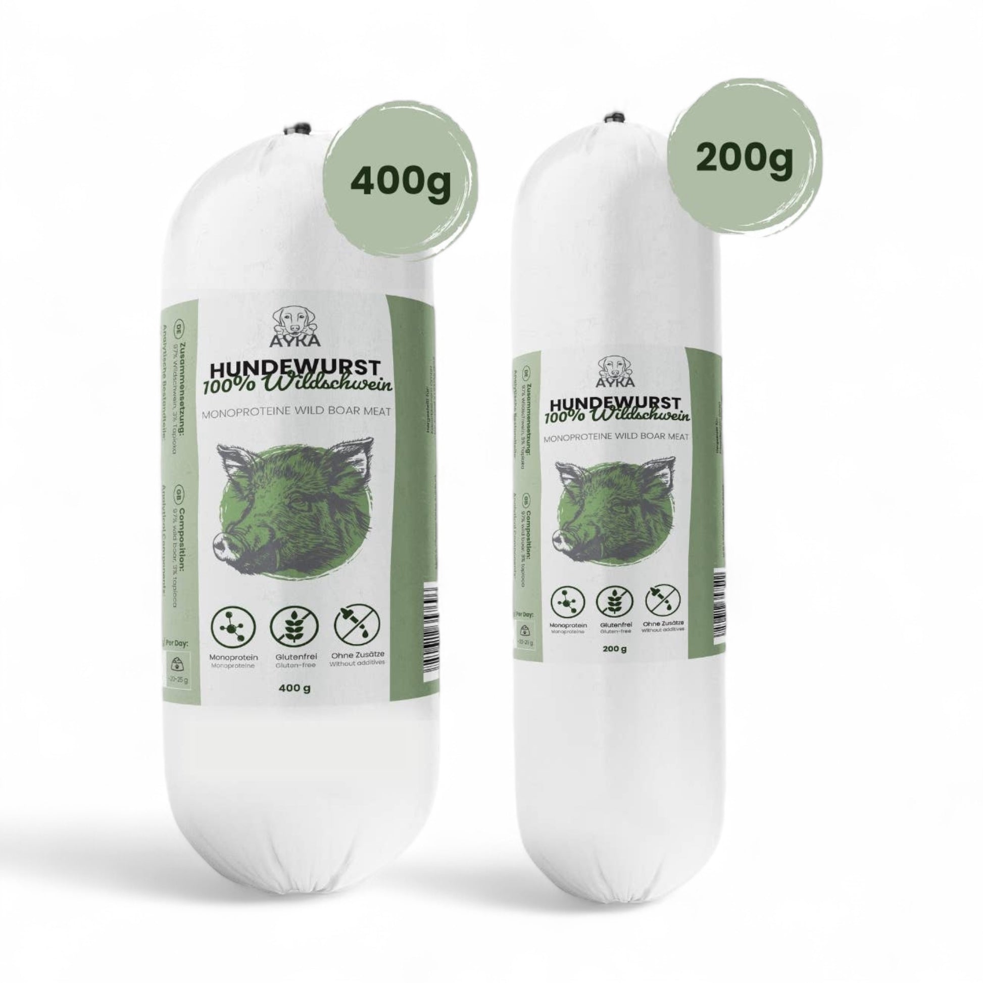 Ayka natuurlijke hondenworst wild zwijn 200 en 400 gram