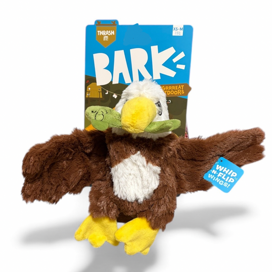 Majestic Marty is een trotse, pluche zeearend met een spanwijdte van 35 cm én een vis stevig in zijn snavel. Dit speeltje is pure Bark-humor: zacht, vrolijk en gemaakt om lekker mee te zwiepen en te zwaaien.