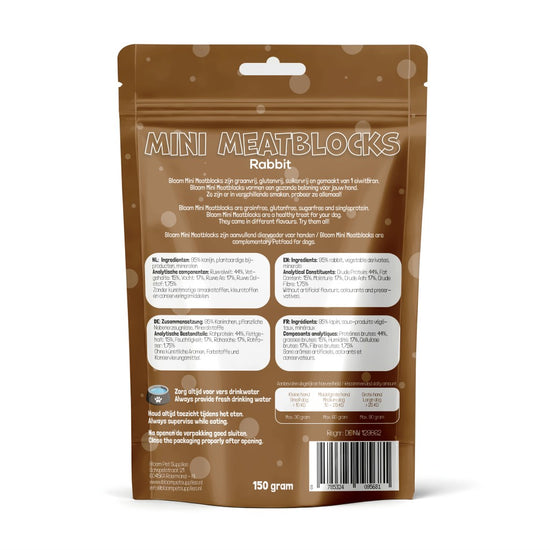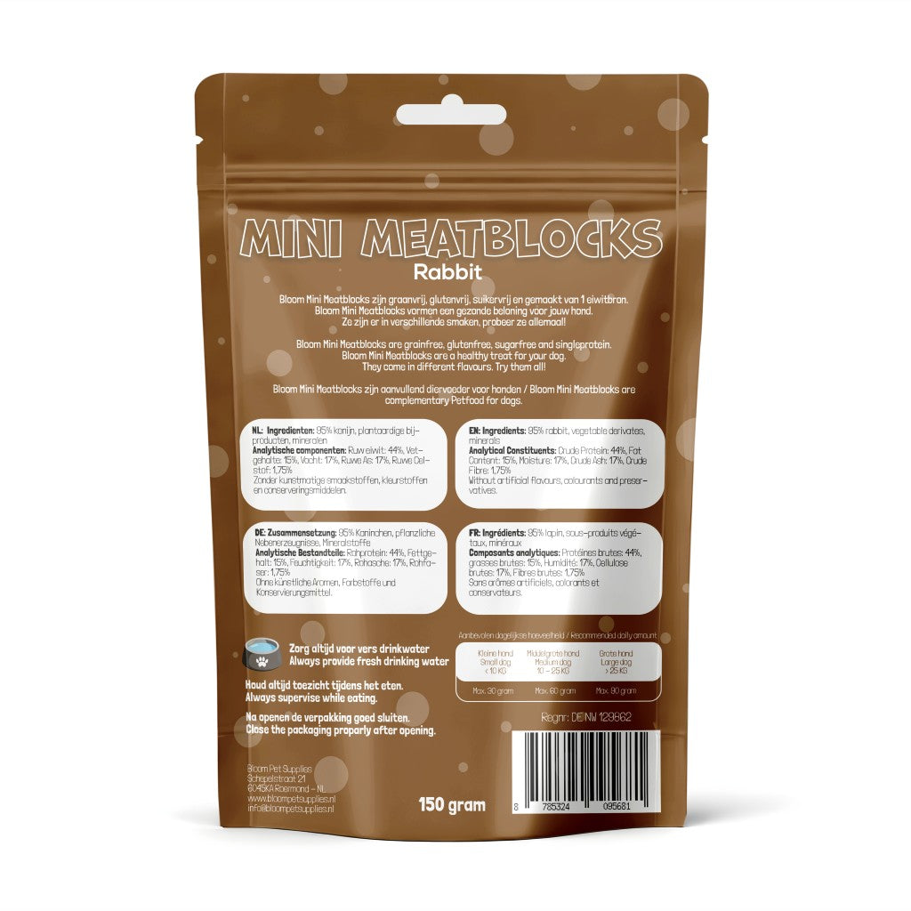 Bloom Konijn Mini meatblocks natuurlijke trainingssnoepjes hond 150 gram