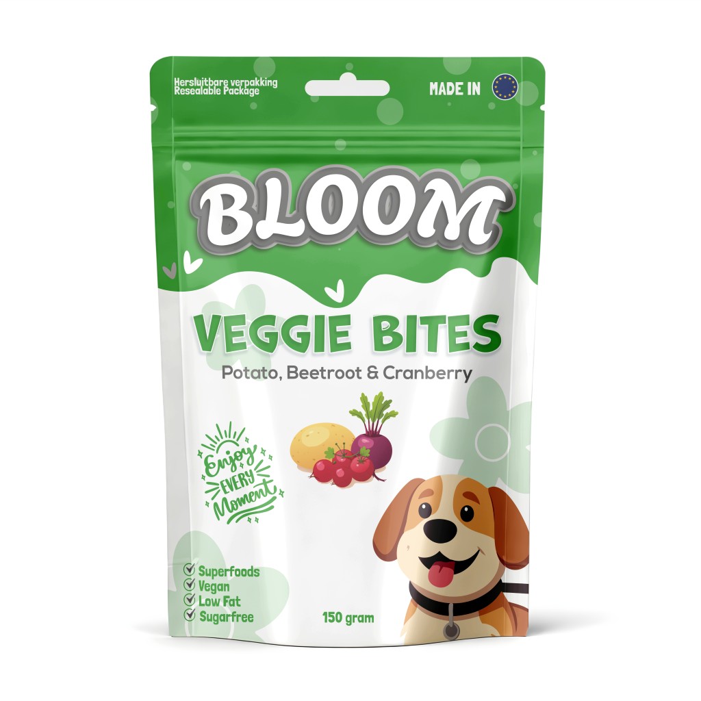 Bloom Veggie Bites aardappel rode biet en cranberry natuurlijke trainingssnoepjes hond 150 gram