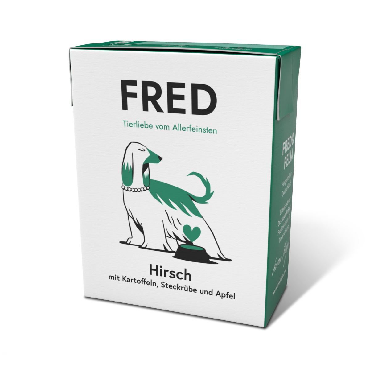 FRED Hert met verschillende groentes is een verfijnd natvoer met hert als enige dierlijke eiwitbron, gecombineerd met aardappel, koolraap en appel. Zacht voor de maag, rijk van smaak en perfect voor honden die beter gedijen op iets bijzonders.
