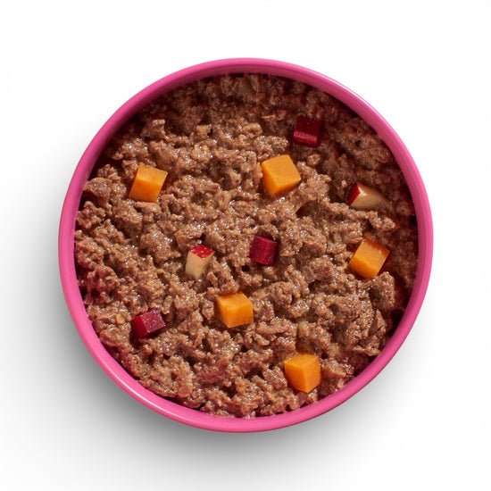 Zoals je van FRED mag verwachten: geen granen, geen kunstmatige toevoegingen en geen onnodige ingrediënten. Gewoon eerlijk hondenvoer, zacht van structuur en groot van smaak.