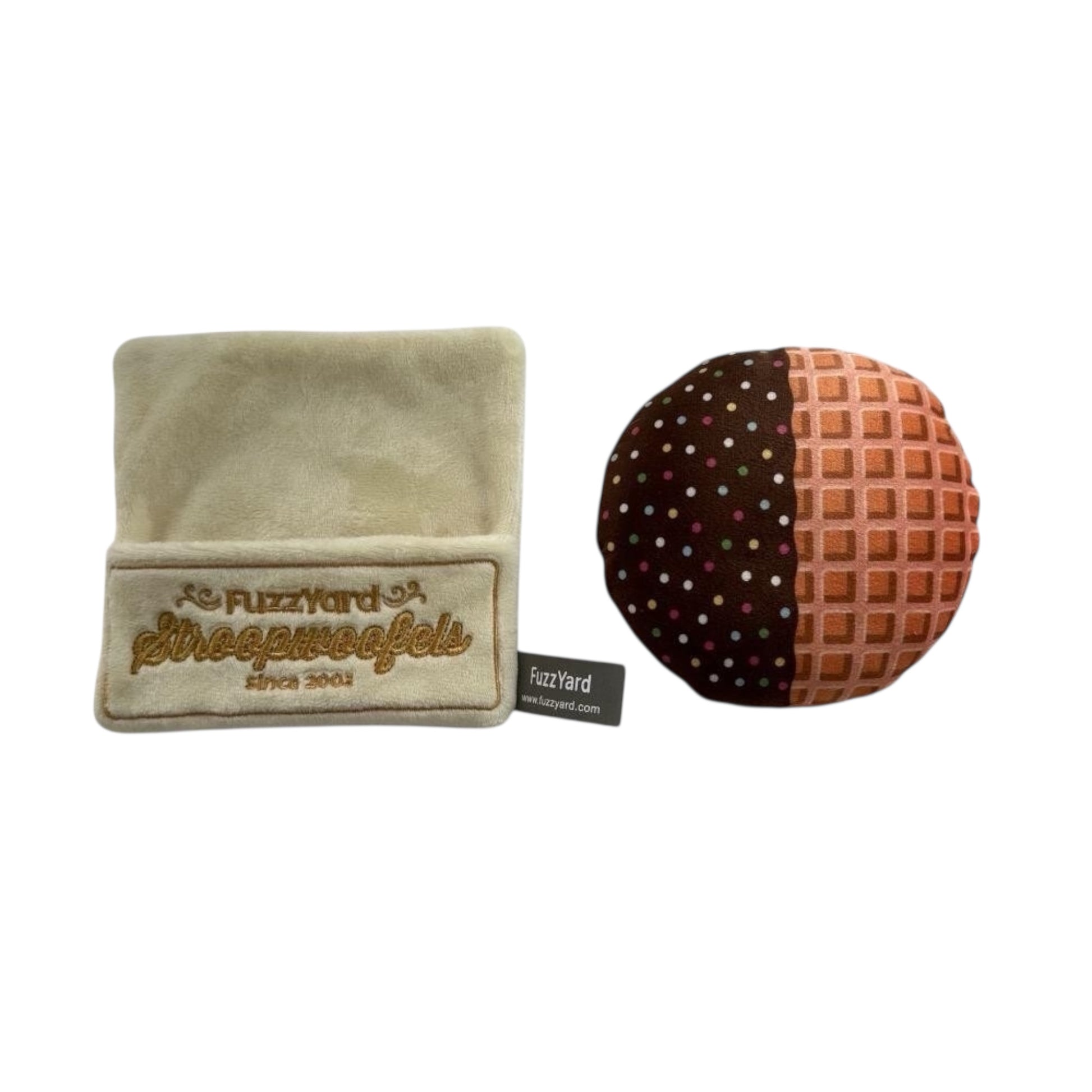 Nou ja… een piepende stroopwafel van pluche dan. De Fuzzyard Stroopwoofels zien eruit als een Hollandse lekkernij, maar zijn 100% hondenproof. Een zachte wafelbal met pieper, verpakt in een fluffy zakje – het ultieme speeltje voor elke snack-lover.