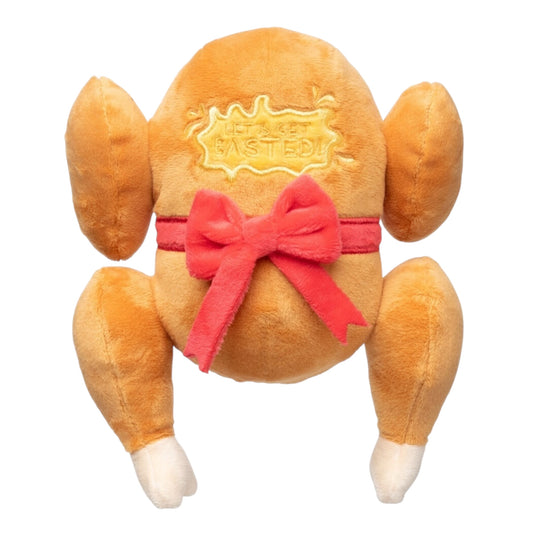 Fuzzyard weet precies wat honden leuk vinden. Dingen die eigenlijk niet mogen. Zoals een sappige, perfect gebruinde feestkip van tafel jattten. Daarom is er nu de “Let’s Get Basted” Roast Chicken. Een flinke pluche kerstkip met een strik om én een piep binnenin. Net echt, alleen dan zonder oven, zonder botten en mét hilariteit.