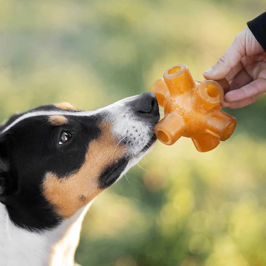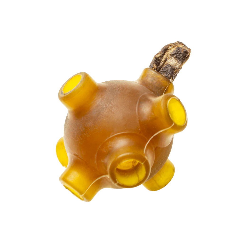 Dit kauwspeeltje kun je met de sticks van Retorn of doe er wat brokjes is. Je kunt het speeltje ook invriezen zodat je een fijne verkoeling hebt op warme dagen of als je een pup hebt tijdens het tanden wisselen.