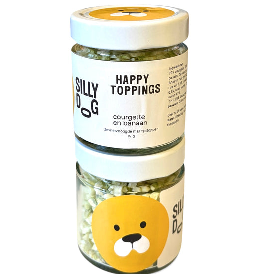 Happy Toppings met courgette en banaan. Een vrolijke en gezonde boost voor de maaltijd van je hond.