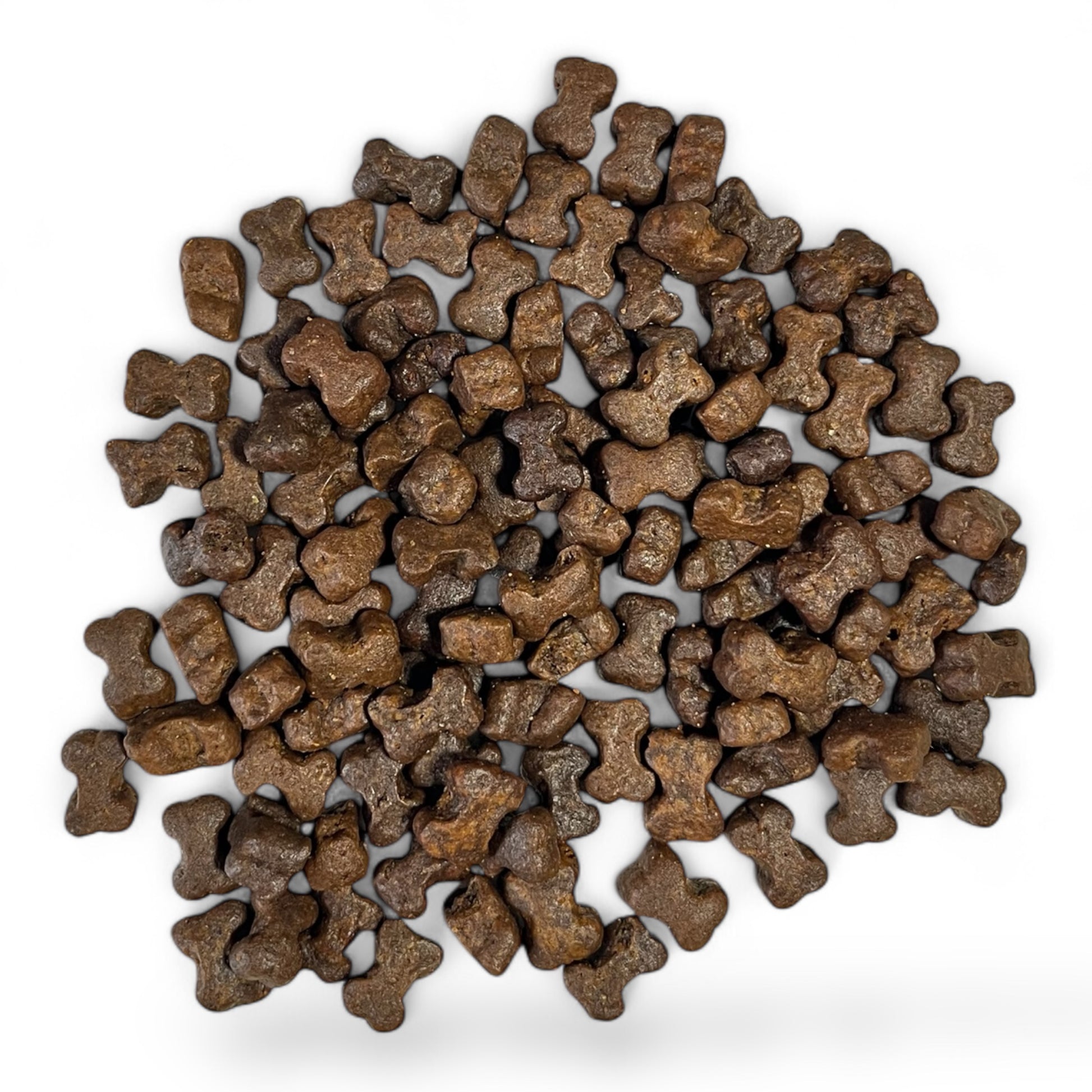 Deze mini trainertjes zijn klein van formaat maar groot in smaak. Ze zitten voor maar liefst 80% vol vers gevogelte (kip, eend én kalkoen), zijn een beetje krokant én makkelijk verteerbaar. Ideaal als beloning tijdens de training of gewoon als verantwoord tussendoortje.