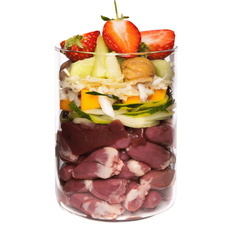 - Unieke combinatie: Vers eendenvlees met groente en fruit plus bijzondere aanvullende ingrediënten