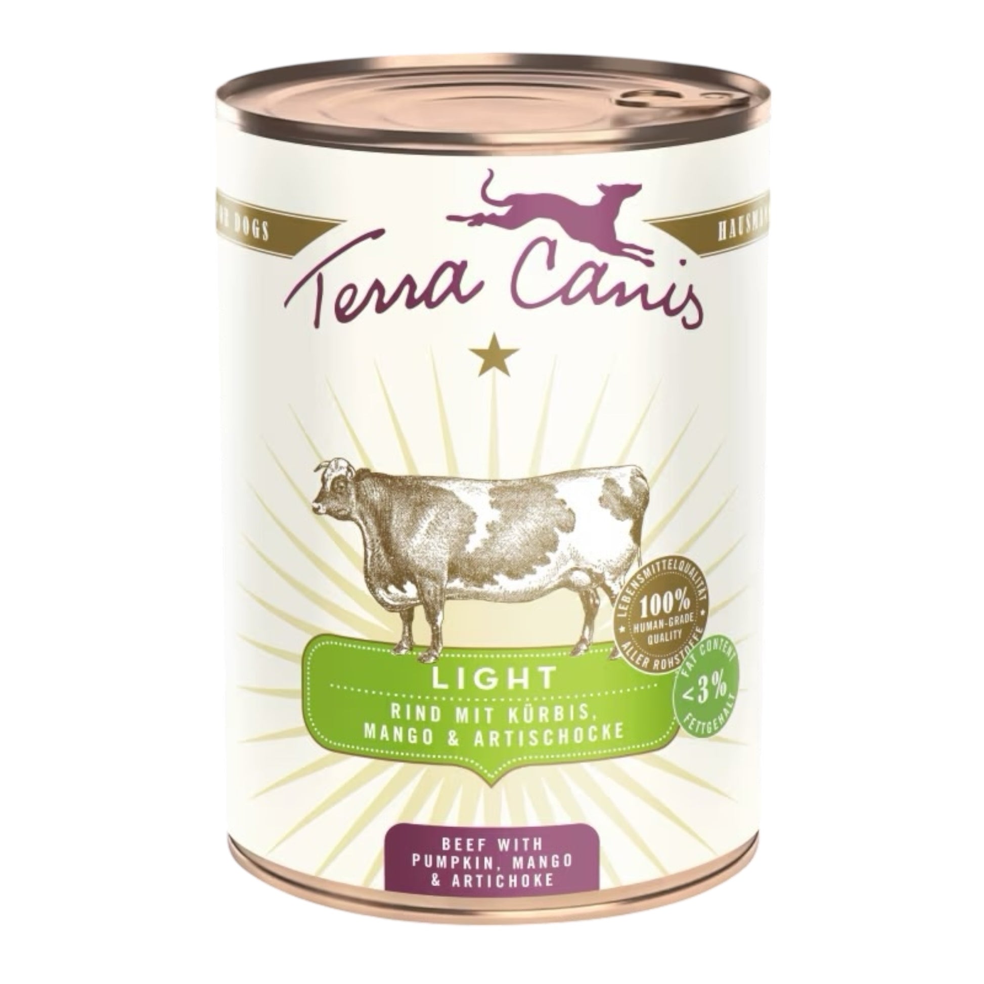 Is je hond wat aan de stevige kant? Geen probleem – met de Terra Canis LIGHT-menu’s geef je ‘m een smakelijke maaltijd waar hij blij van wordt én die helpt bij het afvallen. Met deze fijne runder maaltijd van Terra Canis geef je je hond zonder schuldgevoel een heerlijke maaltijd.