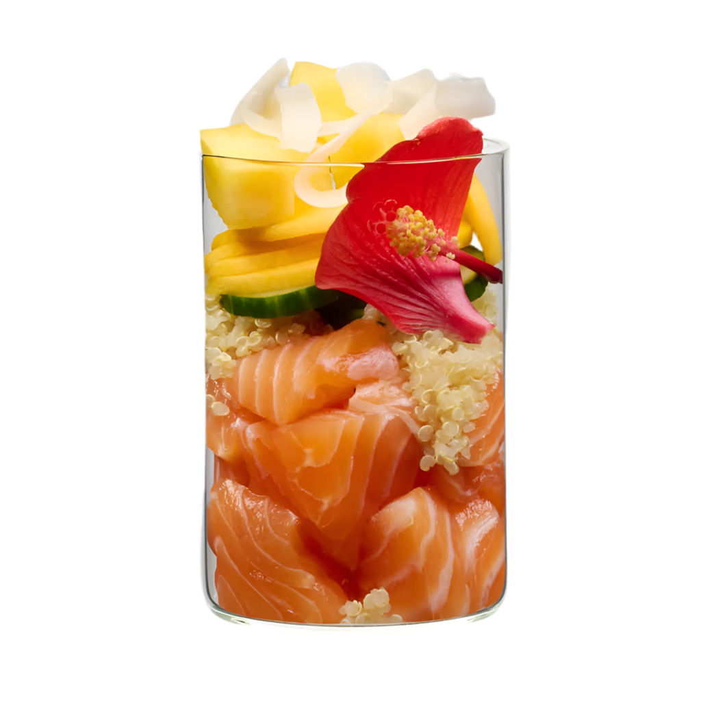 - Unieke combinatie: Verse zalm met groenten, fruit en Hibiscus