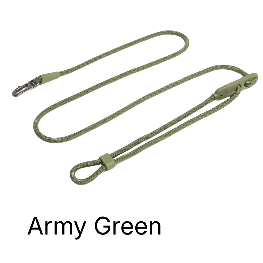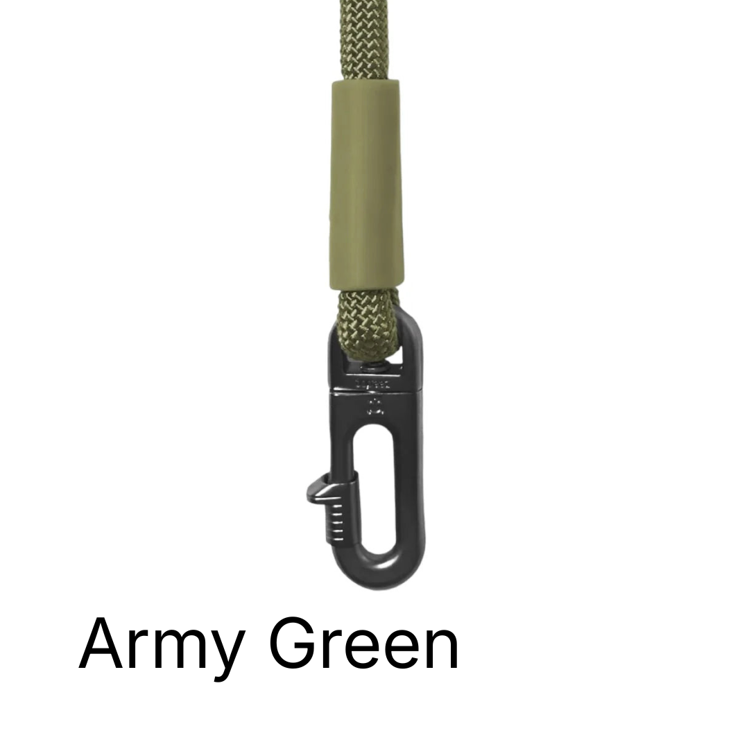 - Army Green: Lichtglanzend legergroene lijn met bijpassende legergroene clip en schuiver. Afgewerkt met een gun black musketon en legergroene siliconen details. Stoer, rustig en krachtig.