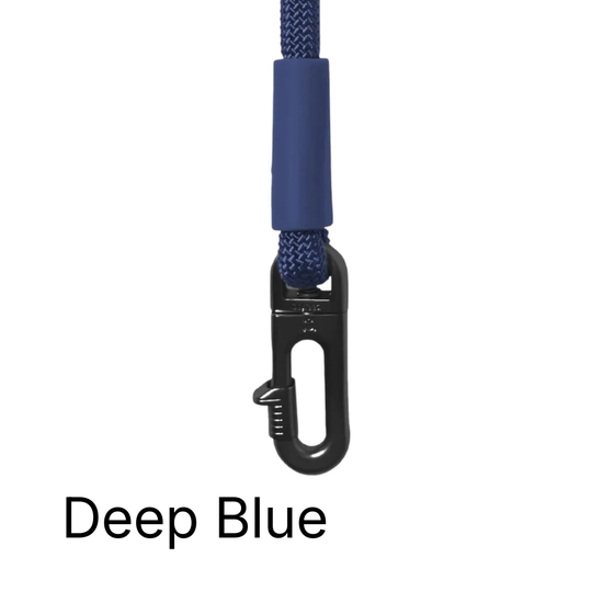 - Deep Blue: Lichtglanzend donkerblauwe lijn met bijpassende donkerblauwe clip en schuiver. Afgewerkt met een zwarte musketon en donkerblauwe siliconen details. Diep van kleur, strak in uitstraling.