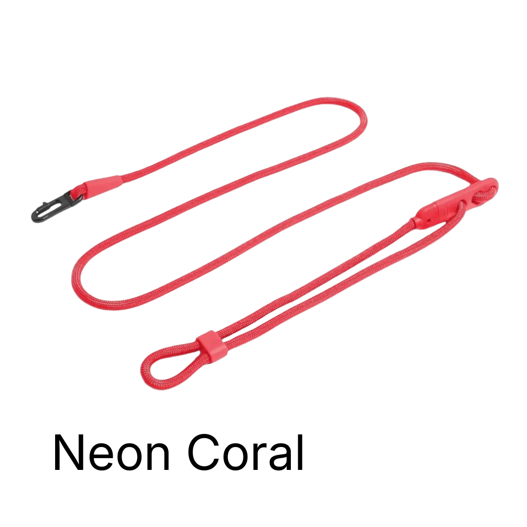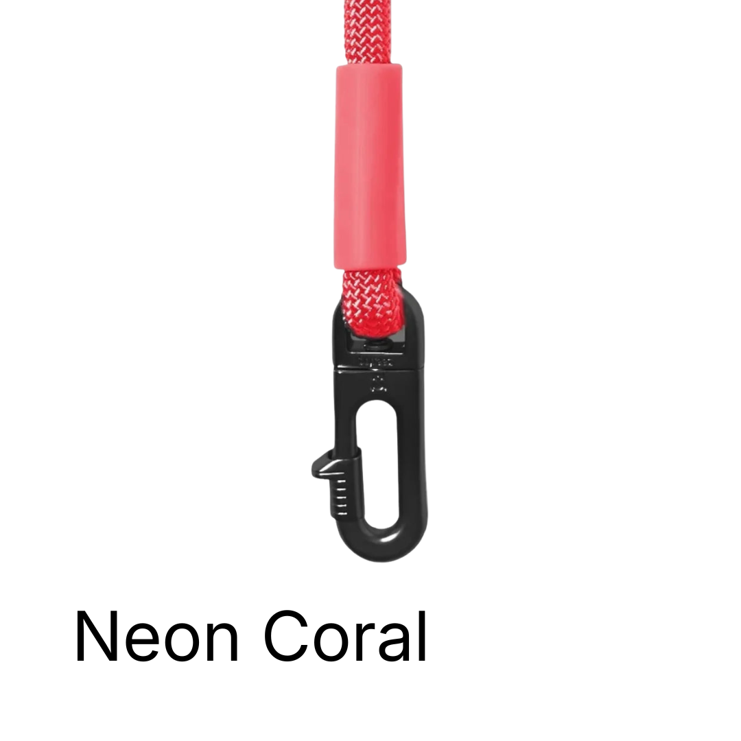 - Neon Coral: Lichtglanzend rozerode lijn met bijpassende rozerode clip en schuiver. Afgewerkt met een zwarte musketon en rozerode siliconen details. Opvallend, energiek, maar stijlvol.